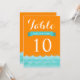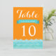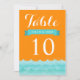 Dessa vackra bordskort för bröllop har havet och vågor i olika nyanser av blått med orange bakgrund. En chic och modern design som är perfekt för strandbröllop, nautiska bröllop och destinationbröllop. Du kan anpassa textfälten efter eget tycke. Andra matchande inbjudningar finns också tillgängliga.