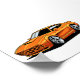 An exotic cartoon sport hybrid with vivid orange tones, graphic highlights, and monumental chrome wheels. A bold experimental car design for fans of stylized automotive art.