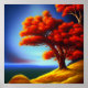 Orange träd vid en klippning vid vatten. Skapat med AI-software.