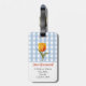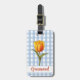 Cute feminin bagagetapp med mönster av blå och vit gingham, check, mönster på baksidan och framsidan. På framsidan av märkrn över det klassiska mönster finns en tulippblomma av gult och orange med grönt löv. Under blomman finns en mall som du kan använda för att anpassa ditt namn. På baksidan av märkrn finns samma blomma med mallar för att lägga till ditt namn och adress eller annan information.