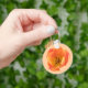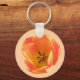 Den här vackra nyckelkedjan för blommigt har ett vackert foto av en orange-tulpanform i fullt. Fotot togs med makrofotografi för att få fram de subtila nyheterna av orange i denna blomma och bran av dess blad. Blomman har skurits av från fotot och lagts på en orange av bleken.