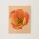 Det här fantastisk-pusslet har ett vackert foto av en orange-tulpanblåsa i fullt. Fotot togs med makrofotografi för att få fram de subtila nyheterna av orange i denna blomma och bran av dess blad. Blomman har skurits av från fotot och lagts på en orange av bleken för att förbättra dess skönhet.