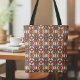 Den här konstruktionen har ett stil i brunn, orange och turkos.