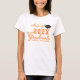 Skapa en personlig t-shirt för examen år 2026 med orange typografi för firandet av examen. Designen är dekorerad med en illustration av en svart examenshatt. Mallen gör det enkelt att skriva in namnet på examen och ange år.