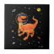 Orange Tyrannosaurus Dinos in Space Kakelplatta