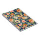 Färgfull vattenfärg och pastellorange, vit och rosa anemon, vallmo, ro och annat vår blommor med blek grönt lämnar på en mörk blått bakgrund i en bild.