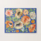 Färgfull vattenfärg och pastellorange, vit och rosa anemon, vallmo, ro och annat vår blommor med blek grönt löv på medelblå bakgrund. Bakgrunden färg kan ändras i redigeraren.