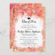 Blandning av persikor och korall orange. Inbjudan till studentfest med vacker färgbakgrund för färgmålning med färgbilder från guld löv. (inte guld löv). Elegant och klass för en feminin blommigt, flickflicka, student. Denna moderna och elegant unika inbjudan till studentfesten vatten färg är en konstnär för studenter på hög- eller högskolenivå, särskilt för dans, musik, konsthögskola eller annan högstadiekonst. Klassisk mjuk design med variationer i toner och skuggor i abstraktens bakgrundstema. Snygg party studenten inbjudan för henne, kvinnor studenter.