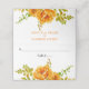 Det här vikta eskort för bröllop är ett perfekt sätt att ge ditt bröllop en speciell beröring. Den har en fantastisk utformning med en bukett med levande orange vattenfärgsblommor och grönt succulent löv som påminner om båda sidors grund. Det är ett underbart sätt att skapa ett minnesvärt påstående för dina gäster när de hittar ställe vid bord. Den här unika designen är säkert en konversationsstart som gör att dina gäster kan uppskatta den speciella uppmärksamhet för detaljer som du har lagt in i bröllopsdagen.