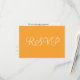 Bröllop OSA med färsk söt inspirerade orange med solid bakgrund i färg och vitt skript på framsidan. Anpassa tillbaka i svart text på vit bakgrund med er specialskylt om dessa moderna inbjudningar som är vackra för en sommar bröllop. Orange Hex-kod FFA62F. Klicka för att anpassa och redigera teckensnittet stil eller färg. Originaldesign från TamiraZDesign.