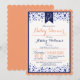 Anpassa den här eleganten, den formella Orangen i Coral, vit och marin blå, mörk blått, konetti söt babyduschinbjudan. Kan anpassas till pojke eller flickduschar. Perfekt år runt i klassy inbjudan för vår, sommar, fall eller vinter-babyduschar.