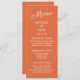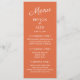 Orange-meny med vit text för repetitionsmiddagen, bröllopsmottagning eller andra evenemang som du planerar. Bakgrund och färg är helt anpassade med Zazzles design verktyg, så skapa din meny matcha din egen händelse.
