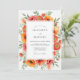 This artistic design showcases a lush arrangement of watercolor poppies and ranunculus in warm shades of orange, coral, and peach. Delicate green leaves weave throughout the blooms, creating a vibrant and natural aesthetic. The soft, painterly style is ideal for a seasonal outdoor ceremony with a bright and joyful palette.