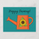 Orange Watering Can med solros | Lägg till text Helg Vykort