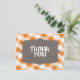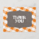 Södra land inspirerade till ett strålande tack, designat med "Tack" i vitt över en brunt illustration av ram canvas struktur, på en diagonal orange och vit gingham mönster. Baksidan är personlig med ditt eget tack till anpassningsbarna. Du kan också enkelt ta bort malltexten om du vill lämna kortet/korten tomt om du vill skriva dina egna tacksamhetskänslor för hand. De här korten, med sin klassiska gingham mönster, är perfekt för Baby Shower och Southern Möhippa firande.