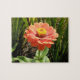 Det här fantastisk-pusslet innehåller ett detaljerat foto av en söt orange Zinnia-blomma. Fotografiet togs med hjälp av makrofotografi och visar hur känslig orangen är och gulten i denna vackra blomma.