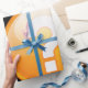 Orangen ifrågasätter markerar inpackning av papper presentpapper