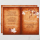 Elegant Maple löv orange faller bröllopsceremonin och party-program som innehåller elegant Maple-löv i orange, vitt och brunt färg och snurrar på brinnande orange-grinig nedfläckad-bakgrund. Den här elegantens moderna bröllop-malldesign ingår i en samling eller uppsättning bröllop och är helt och hållet anpassade. Det är perfekt för fall eller höst bröllop. Du måste lägga den i mitten. Välj endast den här typen av pappert värde när det viks väl. Maple,löv,bröllop,bjuden,orange,bränd+orange,vit,brun,nedfläckad+bakgrund,mall,fall+bröllop,höst+bröllop,snurra,anpassade