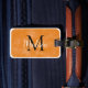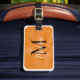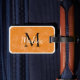 Anpassningsbarnas bagagemärken i orange. Abstrakt i bakgrunden. Redigera den ursprungliga och namn för att göra den till personlig. Gift idé.