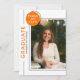 Foto Studentfest Modern Script Black Orange-inbjudningar innehåller ditt favoritfoto med den enkla texten "Student" och din namn och personlig studenten-information. Anpassa genom att redigera texten i de angivna textrutorna och lägga till ditt favoritfoto. Anpassa informationen om motsatsen till inbjudan från studenten. Skapat av ©Evco Studio www.zazzle.com/store/evcostudio