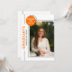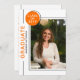 Foto Studentfest Modern Script Black Orange-inbjudningar innehåller ditt favoritfoto med den enkla texten "Student" och studentfestens inbjudningsinformation på motsatt sida. Anpassa genom att redigera texten i de angivna textrutorna och lägga till ditt favoritfoto. Skapat av ©Evco Studio www.zazzle.com/store/evcostudio