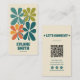 En Vintage färglös blommigt blommar affärskort. Som du ser innehåller den ett handgjort groovy-blommönster av boho abstrakt Blommor daisy. Den har nostalgiska 70-tal vibes och färg och groovy typsnitt. Och du kan enkelt och enkelt anpassa namn och yrket och QR-koden. Genom att klicka på knappen Anpassa. Så ta tag i den och gör den till din, så att din verksamhet är grym och annorlunda.