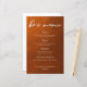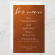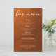 Följ hösttrenden med ärliga toner med vår brända orange till bruna gradient faller bröllopsmeny pub. Enkelt vit typografi på rustik bakgrund för ett minimalistiskt utseende. Böhmen som påminner om terracotta clay belyser din elegant kalligrafi på trendiget färg bleknar pappert.