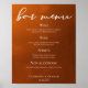 Följ hösttrenden med ärliga toner med vår brända orange till bruna gradient faller bröllopsmeny pub. Enkelt vit typografi på en rustik poster för ett minimalistiskt utseende. Böhmen som påminner om terracotta clay framhäver din elegant-kalligrafi på trendiget.
