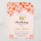 rosa och guld blommigt 16 födelsedagsfest inbjudan.