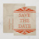 Snyggt och chic Elegant Deko Spara vykortet för datum som innehåller ett konsthämmande par som roterar gräns i mörkens orange och en vintage som textureras i en mjuk beige. Det här sparar datumet för vykortet med rustik charm samtidigt som du behåller ett vackert sofistikerat fläkt. Absolut perfekt för en konst deco 1920:s vintage bröllop. Enkel att anpassa, lägg bara till din bröllop-information i den text fält tillhandahåller. Klicka på Anpassa om du vill söka efter fler anpassningsalternativ, t.ex. ändra typsnitt eller färg.