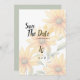 En modern inbjudan till orange, grönt och solrossar blommigt Bröllop spara datum. Den här botaniska solrossarens sommarinbjudan är perfekt för alla blommigtar eller andra. Den här utformningen är perfekt för ett trendig- och snyggt-evenemang utomhus i bröllop. Anpassa den här designen med egen information om meddelande och personlig. Alla designer skrivs ut.