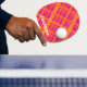 Rosa Pong-paddel med en plaid mönster i skarp orange och magenta, och ditt eget namn.