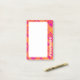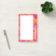Bärbara anteckningar som innehåller ett plaid mönster i skarp orange och magenta, och ditt eget namn.