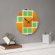 Kvadratisk färg-kombination av övertonad orange med gyllene gulter, grönt kalk och blått färg i plattor.