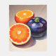 Den här vattenfärgsmålningen fångar orangarnas skönhet och överflöd. Orangarna återges i en mängd olika orangar, från gult av blek till djup orange. Löven är en lush-grönt och bakgrunden är en blåblå .