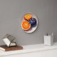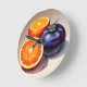 Den här vattenfärgsmålningen fångar orangarnas skönhet och överflöd. Orangarna återges i en mängd olika orangar, från gult av blek till djup orange. Löven är en lush-grönt och bakgrunden är en blåblå .