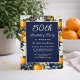 Oranges White Flowers Navy Blue 50th Birthday Inbjudningar