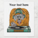 En lustig tecknad illustration av en söt orangutan, skapar musik på ett bord med vinylrekord. Denna coola orangutan har en tatuering och har hörlurar och ett basebolllock.