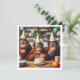 En inbjudan till coola som beskriver orangutangs sitta på ett kök i bord som firar med en födelsedagskalas och party, en underbar inbjudan till orangutang älskare, ape älskare och Zoo verkligen. Kortet kan redigeras helt och personligen passar dina behov.