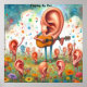 En surrealistisk symfoni av ljud och syn! Denna nyckfulla tecknad film visar en jätteöra som klimpar på en gitarr medan en mängd små öron lyssnar i förundran. Oavsett om du är musikälskare, pun-entusiast eller fan av udda humor, träffar denna design alla rätta tonerna. Perfekt för presenter, väggkonst och merch som marscherar i takt med sin egen trumma... eller öra.