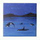 En akrylmålning av en pod av orca under ett stjärnmönster, himlar, på kvällen.