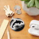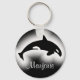 Orca eller Killer Whale (Orcinus orca), svart och vit silhuett med vit ljusbakgrund. Du kan anpassa den här nyckelkedjan med en namn eller annan kort-text. Orca-valar finns i varje hav i världen och utvecklas i alla temperaturer i vatten, från tropiska till (ant)arktiska. Orca har olika betydelser som andlig djurledning eller djurets totem, t.ex. själsdjup, färd, gömt sfärer, sång och musik, familj och gemenskap, livsstil och skydd. I många sjöfartskulturer anses dödliga valar vara själar hos avskilda vänner och nära anhöriga. Trots deras ödesdigra namn är dessa havsdäggdjur i vilden inte farliga för människor.
