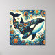Orca Killer Whale Blommigt Whimsical Nautical Beac Canvastryck