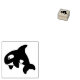 Tecknad knubbig Orca val med ett litet vitt hjärta nära svan.