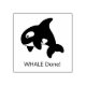 Tecknad knubbig Orca val med ett litet vitt hjärta nära svan. Budskapet lyder: WHALE Klart!