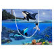 Dessa val är lycklig och fri simning under det South Pacific havet. Och i en plötslig bristning av energi bryter igenom pappaval vågar som om för att visa av för hans Orcafamilj.