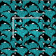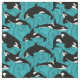 Lägg till en vattenvidrör till nästa syningsprojekt med den här illustrerade väven med illustrationer av orkas eller dödliga valar i svart och vitt mot en tealblå havsbakgrund i vågar.