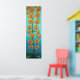 Stiliserad målning av solnedgångsfärgade färgader av orange på en slående blå/azure-bakgrund.