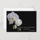 Lägg till ett personligt tack, tack och uppskattning för kondoleanser efter att en älskad dog och förlorade till söt Orchid on Black Tack för ditt sympatikort. Denna sympati för anpassningsbarnas blommigt i klass tackkort har ett botaniskt foto av en vit blommar av falaenopsis eller blomma på stjälken med svart bakgrund.