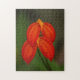 Twin Masdevallia Ignea Orchids inramad av den omkringliggande trädgårdens lush.